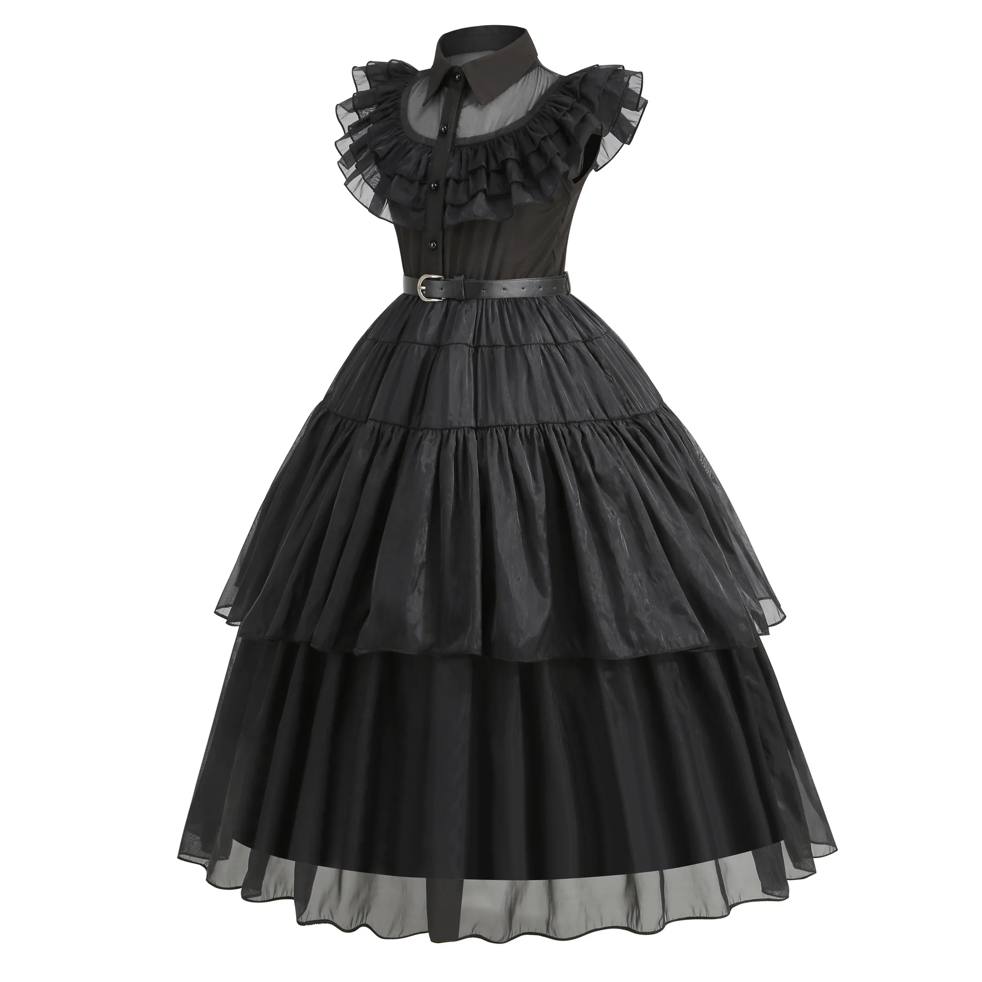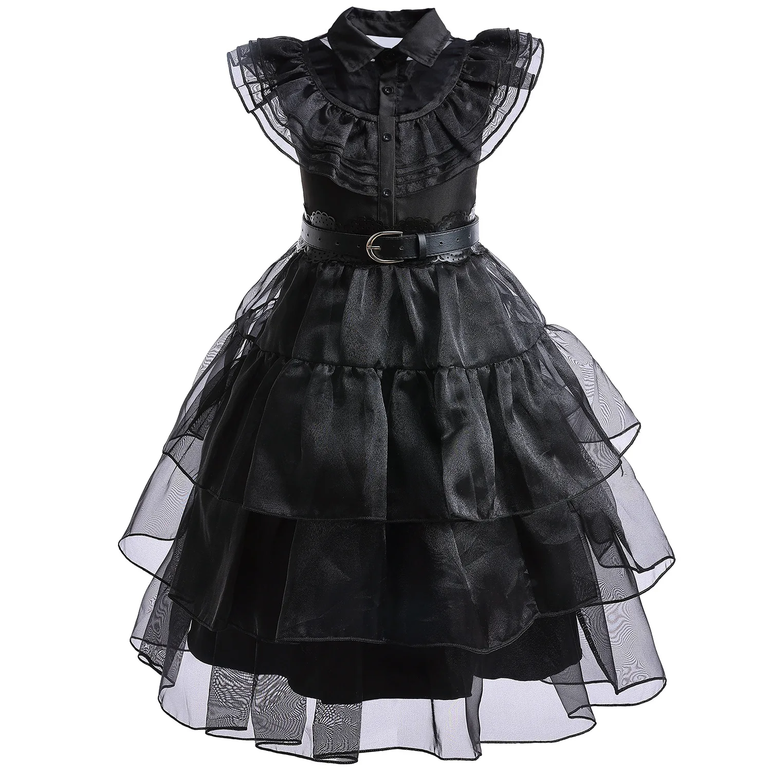 2025 Wednesday Hot Black Short Costume New Vestidos For Kids Cosplay Carnival Easter Halloween Party Costumes for 3-10 Years