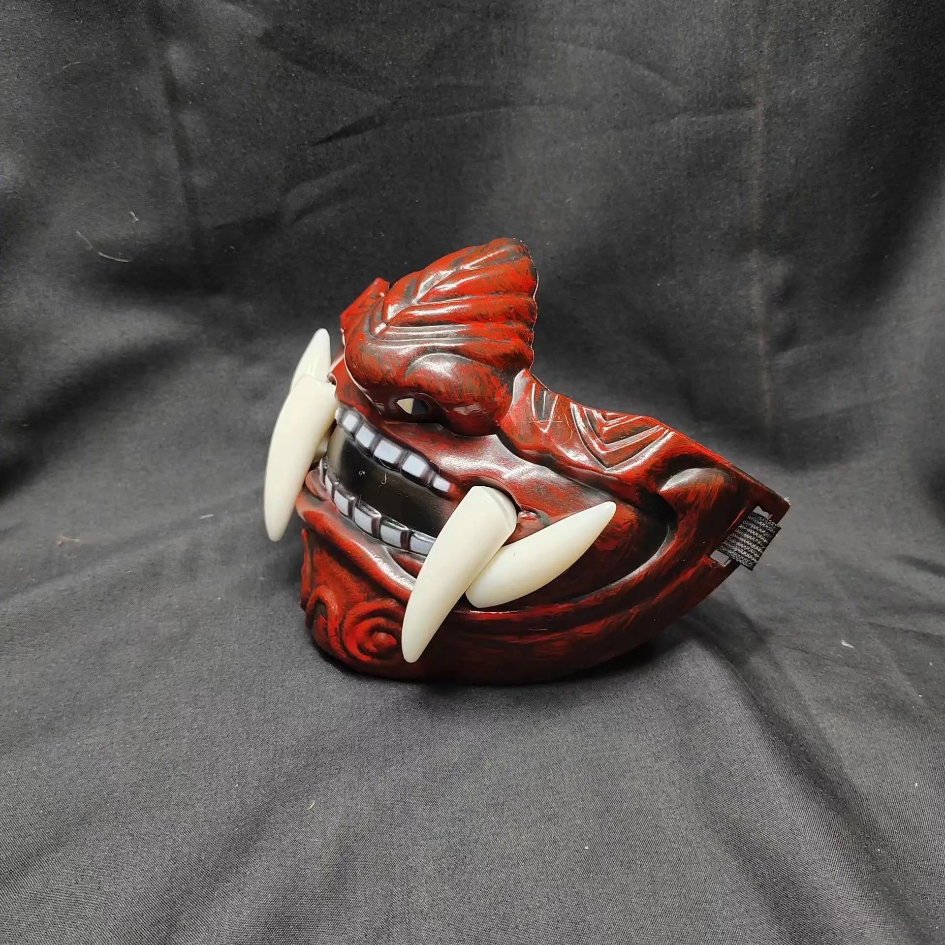 The 3D face cover with white fangs has the meaning of seeking good and avoiding evil and frightening ghosts in Japan.